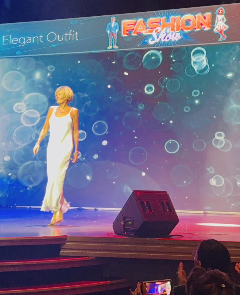 Une animatrice m’avait proposé de défiler sur scène, selon elle, je représentais l’élégance parmi toutes les passagères de la croisière. Une idée qui m’avait d’abord amusée… puis un peu inquiétée !