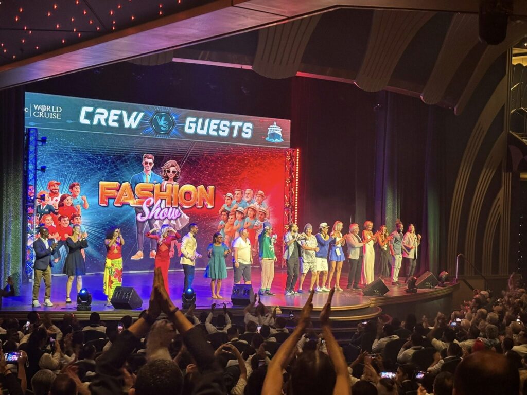 Ce soir-là, les projecteurs n’étaient pas braqués sur les artistes habituels, mais sur le personnel du bord : femmes de chambre, cuisiniers, photographes…